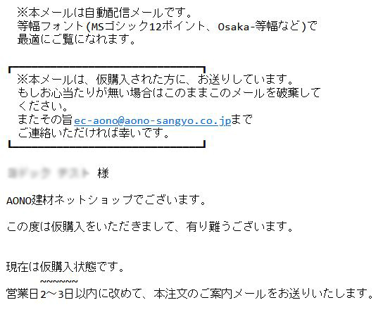 7. ご注文確認後、管理者より仮購入ご確認メールが送信されます。